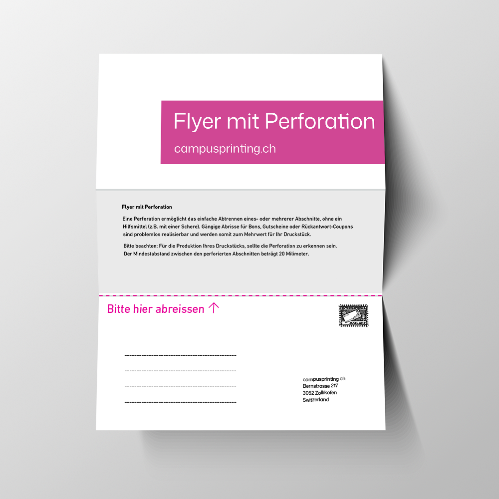 • Perforation: Ermöglicht einfaches Abtrennen von Rücksendeteilen, Karten oder Coupons – perfekt für Gewinnspiele, Umfragen oder Bestellungen.